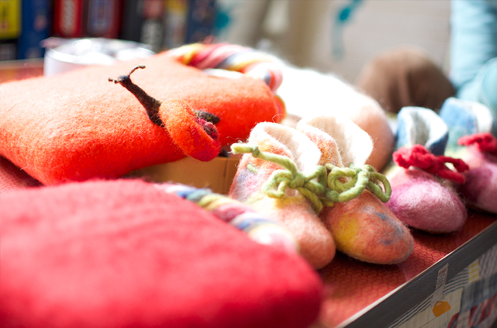 自分で作品を作る傍ら、ワークショップや小学校の課外授業等でニードルフェルティングの魅力を伝えている。